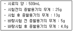 46. 폐기물의 노말헥산 추출물질의 양을 측정하기 위해 다음과 같은 결과를 얻었다. 노말헥산 추출물질의 농도는?