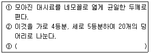 46. 다음은 시료의 분할채취방법 중 구획법에 관한 내용이다. ( )안의 내용으로 옳은 것은?