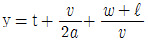 25. 신호시간 결정에 있어 현시(顯視)간 전이시간(황색시간) 산정공식으로 맞는 것은? (단, y = 황색시간, t = 운전자 반응시간, v = 접근 속도, a = 임계감속도, w = 교차로의 폭, ℓ = 차량의 길이)