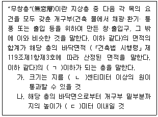 63. 소방시설 설치 및 관리에 관한 법령상 무창층(無窓層)에 관한 조문의 일부이다. ( )에 들어갈 내용으로 옳은 것은?