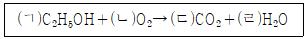 77. 에틸알코올이 완전 연소한 경우의 화학반응식이다. 다음 (ㄱ)~(ㄹ)에 들어갈 숫자는?