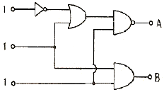 3. 그림의 논리회로에서 3개의 입력단자에 각각 1의 입력이 들어오면 출력 A와 B의 값은?