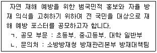12. 재해 예방 포스터를 공모하는 안내문을 다음과 같이 작성하였다. 반드시 추가해야 할 내용으로 적절한 것은?