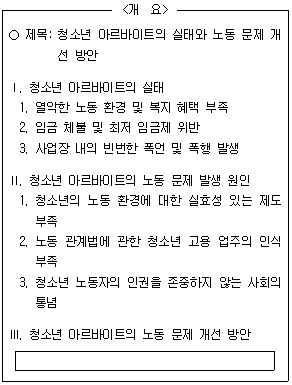 2. <개요>의 빈칸에 들어갈 내용으로 적절하지 않은 것은?