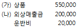 21. 다음은 (주)상공의 거래 내역이다. (가),(나)의 차변계정과목에 해당하는 것으로 옳은 것은?