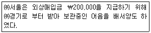 15. 다음 거래를 분개 시 대변의 계정과목으로 옳은 것은?