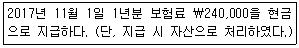 5. 상공상점의 거래 내용이다. 회계 기간말인 2017년 12월 31일의 보험료 결산정리 분개로 옳은 것은?