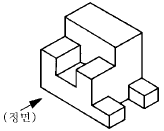 55. 입체도의 화살표 방향 투상도로 가장 적합한 것은?