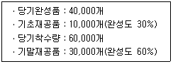 12. 다음의 자료를 이용하여 평균법에 의한 가공원가 완성품환산량을 구하시오(단, 재료는 공정 초기에 전량 투입되고 가공원가는 공정 전반에 걸쳐 균등하게 발생한다).