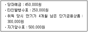 1. 다음 중 현금및현금성자산에 해당하는 항목의 총합계액은 얼마인가?