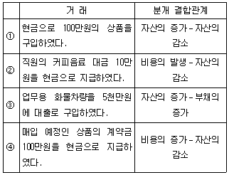 2. 다음은 회계상 거래의 결합관계를 표시한 것이다. 옳지 않은 것은?
