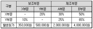 10. 다음의 자료를 이용하여 보조부문 X에서 제조부문 A에 배분되는 보조부문의 제조간접비를 계산하면 얼마인가? 단, 단계배분법을 사용하고, Y부문부터 먼저 배분한다고 가정한다.