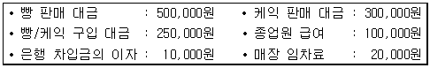 10. 제과점의 5월 중 자료이다. 영업이익을 계산한 금액으로 옳은 것은?