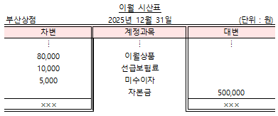 11. 다음은 개인기업인 부산상점의 이월시산표 중 일부이다. 기초자본금은 400,000원이다. 부산상점의 기말자본금을 계산하면 얼마인가?
