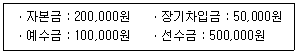 4. 회사의 재산 상태가 다음과 같은 경우 자산의 총액을 계산하면 얼마인가?