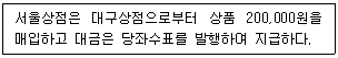 6. 다음의 거래 내역을 보고 대구상점의 입장에서 분개를 할 경우 차변의 계정과목으로 옳은 것은?