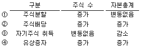 1. 다음 중 주식 수와 자본총계의 변동에 대한 설명으로 옳지 않은 것은?