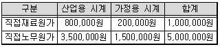8. 시계를 제작하여 판매하는 ㈜똑딱은 두 가지 종류의 시계를 제작하고 있다. 제조와 관련하여 발생한 직접원가는 아래와 같고, 직접노무원가를 기준으로 제조간접원가를 배부하고 있다. 실제제조간접원가는 2,500,000원이다. 산업용 시계의 총제조원가를 계산하면 얼마인