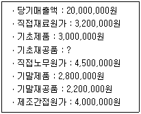 7. 매출원가율이 매출액의 75%일 때, 다음 자료를 이용하여 기초재공품 가액을 계산하면 얼마인가?