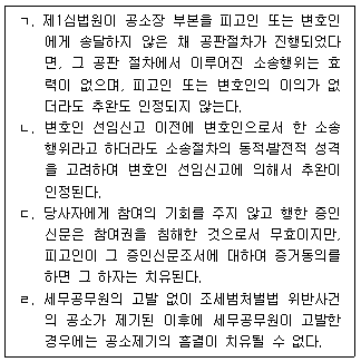 20. 공판절차에 대한 설명으로 옳지 않은 것은? (다툼이 있는 경우 판례에 의함)