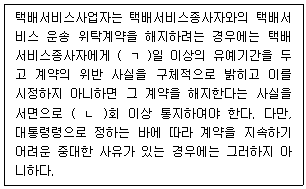 80. 생활물류서비스산업발전법상 택배서비스 운송 위탁계약의 해지에 관한 내용이다. ( )에 들어갈 내용으로 옳은 것은?