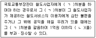 76. 철도사업법상 제재수단에 관한 설명이다. ( )에 들어갈 내용을 바르게 나열한 것은?