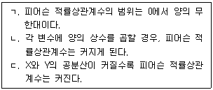 43. 변수 X와 Y간 피어슨(Pearson) 적률상관계수에 관한 설명으로 옳은 것을 모두 고른 것은?