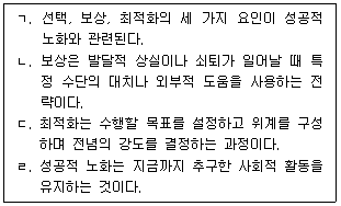 1. 발테스와 발테스(P. Baltes & M. Baltes)의 '보상을 수반한 선택적 최적화' 이론에 관한설명으로 옳은 것을 모두 고른 것은?