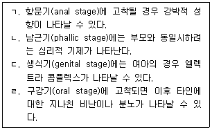3. 프로이드(S. Freud)의 심리성적 발달 단계의 설명이 옳은 것을 모두 고른 것은?