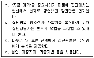 47. 빈의자 기법을 활용할 수 있는 상황을 모두 고른 것은?
