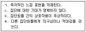 44. 집단에 대한 신뢰가 낮을 때 나타나는 집단원들의 특징을 모두 고른 것은?