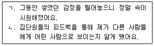 46. 다음에서 집단원이 말하는 치료적 요인을 순서대로 바르게 연결한 것은?