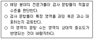60. 심리학자 A는 새로운 우울증 검사 B를 개발하였다. 이 검사가 기존의 우울증 검사 C와 이론적으로 관련성이 높은지 알아보기 위해 B와 C 간의 상관계수를 산출하였다. 이는 무엇을 분석하기 위한 것인가?