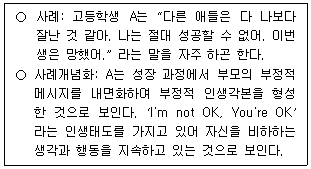 85. 다음 사례의 상담자가 사례개념화에 적용한 상담이론은?