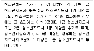 64. 청소년 기본법령상 청소년단체의 청소년지도사 배치기준이다. ( )에 들어갈 내용으로 옳은 것은?