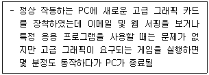 38. 다음 중 데스크톱 PC를 조립한 후 발생할 수 있 는 문제 상황과 해당 유지보수 작업에 대한 설명으로 옳지 않은 것은?