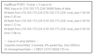 28. 아래 지문의 ping 명령어의 결과로 옳지 않은 것은?