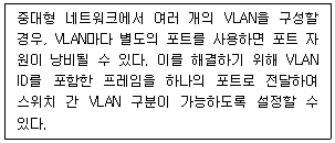 49. 다음 지문처럼 VLAN 식별을 위해 이더넷 프레임에 태그 정보를 추가하여 스위치 간 VLAN 트래픽을 전달하는 방식은?