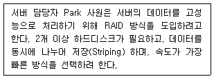 46. 아래 지문에 해당하는 RAID 방식은?