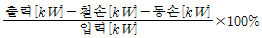 35. 정격 2차 전압 및 정격주파수에 대한 출력[kW]과 전체손실[kW]이, 주어졌을 때 변압기의 규약효율을 나타내는 식은?