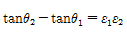 13. 유전율이 각각 ℇ1, ℇ2인 두 유전체가 접해 있다. 각 유전체 중의 전계 및 전속밀도가 각각 E1, D1및 E2, D2이고, 경계면에 대한 입사각 및 굴절각이θ1, θ2 일 때, 경계조건으로 옳은 것은?