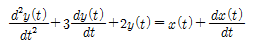 67. 다음 미분방정식으로 표시되는 계에 대한 전달함수를 구하면? (단, x(t)는 입력, y(t)는 출력을 나타낸다.)