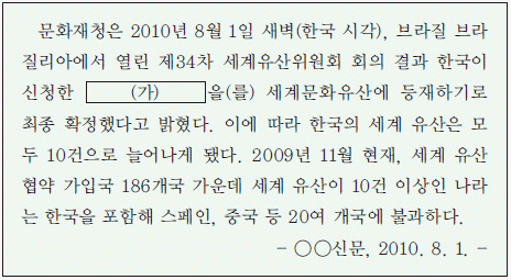 50. (가)의 문화적 가치에 대한 설명으로 적절한 것은? [3점]