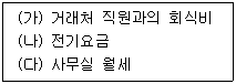 5. 다음의 지출항목에 해당하는 계정과목으로 옳은 것은?(순서대로 가, 나, 다)