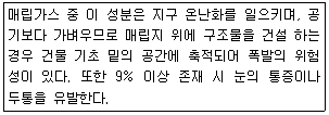 49. 다음은 매립가스 중 어떤 성분에 관한 설명인가?
