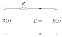 75. 그림과 같은 RC 저역통과 필터회로에 단위 임펄스를 입력으로 가했을 때 응답 h(t)는?