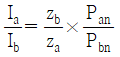 57. 단상 변압기 2대를 병렬 운전할 경우, 각 변압기의 부하전류를 Ia, Ib, 1차측으로 환산한 임피던스를 Za, Zb, 백분율 임피던스 강하를 za, zb, 정격용량을 Pan, Pbn 이라 한다. 이때 부하 분담에 대한 관계로 옳은 것은?