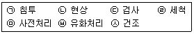 16. 형광침투검사에 대한 [보기]의 작업을 순서대로 나열한 것은?