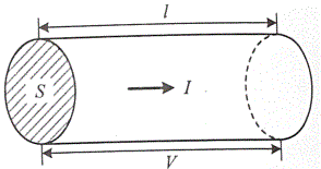25. 그림과 같은 길이가 l, 단면적이 S, 저항률이 ρ인 도체 내의 정상 전류 I가 흐르고 있을 때 옴의 법칙에 의한 도체 양끝 간의 전위차 V는?