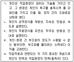 2. 다위스(Dawis)와 로프퀴스트(Lofquist)의 직업적응이론에 관한 설명으로 옳은 것을 모두 고른 것은?